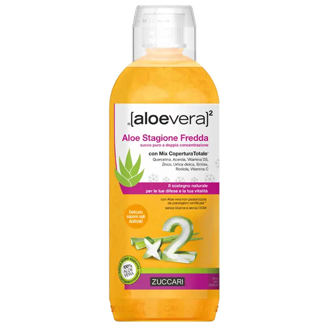 DESCRIZIONEAloe Stagione Fredda Succo Puro d'Aloe Vera Doppia Concentrazione Aloevera2 Zuccari con Mix Copertura Totale è formulato con succo puro d'Aloe Vera concentrato due volte, Quercetina liposomiale, Zinco, vitamina C, vitamina D3, Acerola, Ortica, Smilax (Salsapariglia), Rodiola. Proprietà e IndicazioniCon il freddo ci si può trovare ad affrontare un insieme di piccoli disagi che, sommati, rendono la stagione più impegnativa del previsto. È proprio il periodo dei fastidi ricorrenti, per questo si parla di mali stagionali. Aloe Stagione Fredda viene in aiuto per donare un supporto più mirato, in grado di rispondere ai cambiamenti climatici, ambientali e nutrizionali che si verificano in questo periodo, per permettere di mantenere uno stato di benessere e vitalità, anche durante le giornate più rigide. Ricco di attivi: oltre alle virtù depurative, emollienti e lenitive del Succo Puro d'Aloe doppia concentrazione Zuccari, contiene anche il mix CoperturaTotale: Quercetina liposomiale ad alto assorbimento; Zinco e vitamina C, essenziali per rinforzare le naturali difese dell'organismo; Acerola, nota per il suo effetto ricostituente, preziosa quando energia e vitalità calano drasticamente; Ortica, utile per la funzionalità e il benessere delle prime vie respiratorie; Smilax (Salsapariglia), tradizionalmente impiegata per sostenere articolazioni e ossa, soprattutto quando umidità e freddo accentuano fastidi articolari; Rodiola, alleata preziosa nei momenti di stress, grazie alla sua azione tonico-adattogena; vitamina D3 ad alto dosaggio, fondamentale per il benessere di ossa e articolazioni. Il Succo Puro d'Aloe Vera Doppia Concentrazione Aloevera2 è un integratore naturale con puro succo e polpa di Aloe vera. Solo Aloe vera non pastorizzata, non filtrata a carboni e senza acqua aggiunta, concentrata due volte attraverso il processo dell'osmosi inversa ReversOsmose, processo meccanico grazie al quale è possibile concentrare la materia prima senza alterarne la bio-attività. Svolge un'azione emolliente e lenitiva del tratto gastrointestinale e depura l'organismo. Le sostanze funzionali contenute nel succo d'Aloe vera si caratterizzano per la loro componente polisaccaridica ad alto peso molecolare e possono essere di valido aiuto per la fisiologica funzionalità dei processi depurativi dell'organismo. Tali sostanze sono inoltre note per l'azione lenitiva per il tratto gastrointestinale e della mucosa orofaringea. Queste proprietà lo rendono indicato per depurare l'organismo contribuendo ad eliminare le tossine, per il benessere della mucosa gastrica, intestinale e esofagea, utilizzabile anche come lenitivo in caso di gastrite, reflusso gastroesofageo, sindrome del colon irritabile per alleviare i fastidi correlati. La qualità della materia prima del Succo Puro d'Aloe Doppia Concentrazione è percepibile già dalla bottiglia trasparente, attraverso la quale si può vedere la ricca polpa. Caratteristiche distintiveNon contiene aloina, quindi non ha effetti lassativi indesiderati. Senza acqua aggiunta. Senza zuccheri aggiunti (contiene naturalmente zuccheri). Senza coloranti. Senza ingredienti di origine animale: prodotto Vegan, adatto a vegetariani e vegani. La certificazione Glycemic tested ne garantisce il consumo in assoluta sicurezza da parte di diabetici e iperglicemici. Certificato senza glutine: adatto in caso di celiachia o di intolleranza al glutine. MODALITÀ D'USOPer un corretto impiego del prodotto si raccomanda di assumere 50 ml di succo diluito in 250 ml di acqua o della propria bevanda preferita, al mattino a stomaco vuoto e, se gradito, alla sera prima di coricarsi. Conservare il flacone in luogo fresco, asciutto e lontano da fonti di calore. Una volta aperto il prodotto riporre in frigorifero e consumare entro 30 giorni. Agitare prima dell'uso.AVVERTENZEDopo l'apertura conservare in frigorifero e consumare entro un mese. Si sconsiglia l’utilizzo in gravidanza e/o allattamento e nei bambini. La dose massima giornaliera (100ml) è raccomandata solo per adulti.SPEDIZIONE La spedizione dei prodotti avviene entro 24 ore dall'ordine (sabato e festivi esclusi), tramite corriere SDA. Quando l'ordine sarà spedito, riceverai una e-mail di conferma, contenente un link alla tracciatura online dell'invio, che ti permetterà di verificare in tempo reale lo stato della spedizione. La consegna avviene normalmente in 2-3 giorni lavorativi. Per gli ordini di importo pari o superiore a 49 € la spedizione in Italia è GRATUITA (escluso eventuale contrassegno), altrimenti ha un costo di 3.95 €. Se sceglierai il pagamento in contrassegno, vi sarà un costo aggiuntivo di 3 €. È possibile richiedere la consegna in fermo deposito presso una filiale SDA o un punto di ritiro Kipoint, indicando nell'indirizzo di consegna "Fermo Deposito SDA", o "Fermo Deposito Kipoint" e l'indirizzo della filiale o del Kipoint scelto. Effettuiamo spedizioni in tutto il mondo: le spese di spedizione per l'estero sono calcolate in base al peso dei prodotti ordinati e mostrate prima dell'invio dell'ordine. In caso di assenza, o di indirizzo incompleto o errato, l'ordine andrà in giacenza presso la sede del corriere, e sarà possibile richiedere un secondo tentativo di consegna o ritirarla di persona entro 7 giorni. È possibile effettuare un ordine sul sito e recarsi a ritirarlo direttamente nel punto vendita di Via Iglesias 5/B a Cagliari. Per scegliere questa possibilità, seleziona l'opzione "Ritiro in negozio" al momento della scelta della modalità di spedizione, in questo modo non ti verranno addebitate le spese di spedizione e sarai avvisato con una e-mail quando l'ordine sarà pronto per il ritiro. La spedizione è accompagnata da un riepilogo d'ordine, oppure dalla fattura se richiesta al momento dell'ordine (selezionando l'apposita casella del modulo d'ordine e specificando l'indirizzo di fatturazione). Dalla tua Area Cliente potrai verificare lo stato di lavorazione dell'ordine e lo s