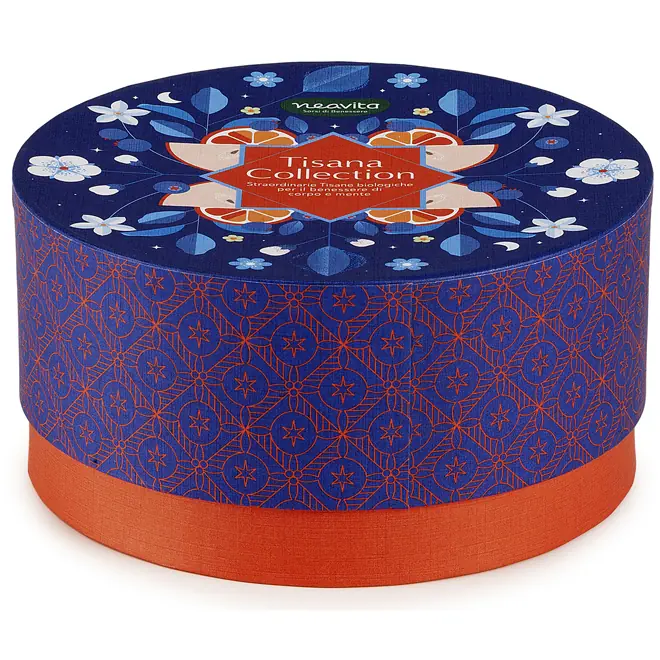 DESCRIZIONEIl Cofanetto Tondo Blu della collezione Tisana Collection Neavita, con scatola cartonata elegantemente colorata, racchiude una selezione di tisane e infusi biologici: il cofanetto contiene 5 bustine filtro per tipo di Tisana Dopo Pasto, Infuso Agrumi di Sicilia, Tisana Dolci Sogni, Infuso Mandarino e Zenzero, Tisana Rooibos Arancia e Cannella, Infuso Frutti di Bosco, Infuso Fragole e Ibisco, Infuso Mela e Vaniglia. La Tisana Biologica Dopo Pasto è un integratore alimentare a base di estratti vegetali di frutti di Finocchio, frutti di Anice e foglie di Menta piperita, utili a sostenere la funzione digestiva, con frutti di Rosa canina, per un gusto gradevole. L'infuso bio Agrumi di Sicilia è una briosa fantasia dai toni freschi e agrumati. Contiene pezzi di Mela, fiori di Ibisco, bacche di Rosa canina, scorze di Arancia, radici di Cicoria, aroma naturale di Agrumi, aroma naturale di Ananas e Pesca. La Tisana Bio Dolci Sogni è un rilassante mélange di Camomilla, Tiglio e Verbena per favorire serenità e distensione. Una festa di colori e profumi che rasserena la mente e l'accompagna verso la quiete della notte in un dolce abbraccio. Contiene bacche di Rosa canina, pezzi di Mela, fiori di Camomilla, foglie di Verbena odorosa, aroma naturale di Ribes nero, fiori di Tiglio, aroma naturale di Vaniglia, aroma naturale di Lampone, aroma naturale di Pesca. L'infuso bio Mandarino e Zenzero è una intensa armonia di sapori dai toni agrumati e lievemente speziati. Contiene fiori di Ibisco, pezzi di Mela, rizomi di Zenzero, scorze di Arancia, bacche di Rosa canina, aroma naturale di Arancia, Rooibos, Pepe nero, aroma naturale di Carota, olio essenziale di Mandarino, aroma naturale di Zenzero. L'infuso bio Rooibos Arancia e Cannella è un delizioso mèlange dalle note agrumate e dolcemente speziate, formulato con Rooibos, pezzi di Mela, scorza d'Arancia, Cannella, aroma naturale di Arancia, Chiodi di Garofano, aroma naturale di Cannella, petali di Girasole. L'infuso bio Frutti di Bosco è un delizioso mélange di bacche dall'intenso ed inebriante profumo. Formulato con fiori di Ibisco, pezzi di Mela, bacche di Rosa canina, aromi naturali di frutti di bosco, aroma naturale di Vaniglia, aroma naturale di fragola, aroma naturale di Mirtilli rossi, Mirtilli rossi, granulato di Fragole. L'infuso bio Fragole e Ibisco è un affascinante mélange dalle sfumatore dolci e vivaci, con pezzi di Mela, bacche di Rosa canina, fiori di Ibisco, foglie di Rovo, foglie di Verbena odorosa, aromi naturali di Fragola, Mirtillo e Ribes nero, granulato di Fragola. L'infuso bio Mela e Vaniglia è un confortevole infuso dalle note dolci e avvolgenti. Contiene pezzi di Mela, bacche di Rosa canina, foglie di Rovo dolce, Rooibos, Cannella, radici di Liquirizia, zucchero di palma da Cocco, aroma naturale di Vaniglia, olio essenziale di Cannella, aroma naturale di Cardamomo, aroma naturale di Caffè, aroma ed estratto naturale di Vaniglia bourbon. Il taglio delle miscele contenute nei filtri è appositamente ridotto perché i loro ingredienti selezionati cedano agevolmente in tisana tutto il pregio delle proprie sostanze attive. Pulite e depolverizzate accuratamente prima del confezionamento, custodiscono le parti vegetali migliori delle specie impiegate, esaltandone le qualità salutistiche, il profumo e il gradevole sapore originario della formulazione. La bustina filtro è interamente biodegradabile, senza punto metallico per non alterare in nessun modo il sapore della tisana e con doppio filtro per esaltare tutte le proprietà benefiche delle formulazioni studiate. Le bustine che contengono i filtri sono in carta e quindi interamente riciclabili. La scatola può essere poi riutilizzata, sia per riporre gli infusi o i tè preferiti, sia per riporre i propri oggetti. Ottimo anche come simpatica, utile e deliziosa idea regalo. MODALITÀ D'USOImmergere in una tazza di acqua calda a circa 100°C la bustina filtro e lasciarla in infusione per circa 5-10 minuti, coprendo la tazza per evitare la dispersione delle sostanze più volatili. Dolcificare a piacere con miele o zucchero, preferibilmente di canna.SPEDIZIONE La spedizione dei prodotti avviene entro 24 ore dall'ordine (sabato e festivi esclusi), tramite corriere SDA. Quando l'ordine sarà spedito, riceverai una e-mail di conferma, contenente un link alla tracciatura online dell'invio, che ti permetterà di verificare in tempo reale lo stato della spedizione. La consegna avviene normalmente in 2-3 giorni lavorativi. Per gli ordini di importo pari o superiore a 49 € la spedizione in Italia è GRATUITA (escluso eventuale contrassegno), altrimenti ha un costo di 3.95 €. Se sceglierai il pagamento in contrassegno, vi sarà un costo aggiuntivo di 3 €. È possibile richiedere la consegna in fermo deposito presso una filiale SDA o un punto di ritiro Kipoint, indicando nell'indirizzo di consegna "Fermo Deposito SDA", o "Fermo Deposito Kipoint" e l'indirizzo della filiale o del Kipoint scelto. Effettuiamo spedizioni in tutto il mondo: le spese di spedizione per l'estero sono calcolate in base al peso dei prodotti ordinati e mostrate prima dell'invio dell'ordine. In caso di assenza, o di indirizzo incompleto o errato, l'ordine andrà in giacenza presso la sede del corriere, e sarà possibile richiedere un secondo tentativo di consegna o ritirarla di persona entro 7 giorni. È possibile effettuare un ordine sul sito e recarsi a ritirarlo direttamente nel punto vendita di Via Iglesias 5/B a Cagliari. Per scegliere questa possibilità, seleziona l'opzione "Ritiro in negozio" al momento della scelta della modalità di spedizione, in questo modo non ti verranno addebitate le spese di spedizione e sarai avvisato con una e-mail quando l'ordine sarà pronto per il ritiro. La spedizione è accompagnata da un riepilogo d'ordine, oppure dalla fattura se richiesta al momento dell'ordine (selezionando l'apposita casella del modulo d'ordine e specificando l'indirizzo di fatturazione).