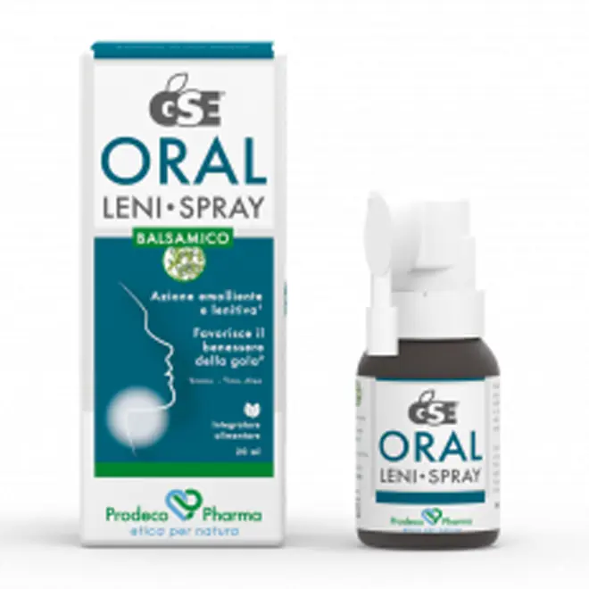 DESCRIZIONEGSE Oral Leni Spray è un integratore alimentare in spray a base di estratto di semi di Pompelmo (GSEvo), estratto di Erisimo, Timo, Altea e Zenzero in soluzione salina dal gusto balsamico. Formulato con estratti ad azione emolliente e lenitiva che favoriscono il benessere della gola. Adatto anche all'uso pediatrico, a partire dai 3 anni di età. L'estratto di Erisimo promuove un'azione emolliente e lenitiva sulla mucosa orofaringea, favorendo la funzionalità delle prime vie respiratorie e il tono della voce. L'Altea supporta la fisiologica funzionalità delle mucose dell'apparato respiratorio e contribuisce al benessere della gola. L'estratto di Timo, dalle note balsamiche, promuove il benessere di naso e gola e la fluidità delle secrezioni bronchiali. Infine, l'estratto di semi di Pompelmo (GSEvo) promuove l'equilibrio microbico dell'organismo e svolge un'azione antiossidante. Il prodotto è caratterizzato dalla presenza dell'esclusivo complesso GSEvo, composto da estratto secco e estratto liofilizzato di semi di Pompelmo. Non contiene propellenti. Il metodo di produzione (tripla filtrazione della soluzione fino a 0,2 micron e confezionamento in ambiente microbiologicamente controllato) e il packaging brevettato "preservative free" con cappuccio protettivo "clip cap" consentono la realizzazione di un prodotto completamente senza conservanti. L'astuccio è realizzato senza plastificazione e con carta certificata FSC ed ECOLABEL che ne certificano il ridotto impatto ambientale durante l'intero ciclo di vita. MODALITÀ D'USOSpruzzare, al bisogno, per 1-2 volte consecutivamente verso l'intero cavo orale. Ripetere l'applicazione per 3-4 volte nell'arco della giornata.SPEDIZIONE La spedizione dei prodotti avviene entro 24 ore dall'ordine (sabato e festivi esclusi), tramite corriere SDA. Quando l'ordine sarà spedito, riceverai una e-mail di conferma, contenente un link alla tracciatura online dell'invio, che ti permetterà di verificare in tempo reale lo stato della spedizione. La consegna avviene normalmente in 2-3 giorni lavorativi. Per gli ordini di importo pari o superiore a 49 € la spedizione in Italia è GRATUITA (escluso eventuale contrassegno), altrimenti ha un costo di 3.95 €. Se sceglierai il pagamento in contrassegno, vi sarà un costo aggiuntivo di 3 €. È possibile richiedere la consegna in fermo deposito presso una filiale SDA o un punto di ritiro Kipoint, indicando nell'indirizzo di consegna "Fermo Deposito SDA", o "Fermo Deposito Kipoint" e l'indirizzo della filiale o del Kipoint scelto. Effettuiamo spedizioni in tutto il mondo: le spese di spedizione per l'estero sono calcolate in base al peso dei prodotti ordinati e mostrate prima dell'invio dell'ordine. In caso di assenza, o di indirizzo incompleto o errato, l'ordine andrà in giacenza presso la sede del corriere, e sarà possibile richiedere un secondo tentativo di consegna o ritirarla di persona entro 7 giorni. È possibile effettuare un ordine sul sito e recarsi a ritirarlo direttamente nel punto vendita di Via Iglesias 5/B a Cagliari. Per scegliere questa possibilità, seleziona l'opzione "Ritiro in negozio" al momento della scelta della modalità di spedizione, in questo modo non ti verranno addebitate le spese di spedizione e sarai avvisato con una e-mail quando l'ordine sarà pronto per il ritiro. La spedizione è accompagnata da un riepilogo d'ordine, oppure dalla fattura se richiesta al momento dell'ordine (selezionando l'apposita casella del modulo d'ordine e specificando l'indirizzo di fatturazione). Dalla tua Area Cliente potrai verificare lo stato di lavorazione dell'ordine e lo stato della spedizione. Per qualsiasi informazione, contattaci via e-mail. Per maggiori dettagli, vedi le Condizioni di vendita. PAGAMENTO Il pagamento degli ordini può avvenire: