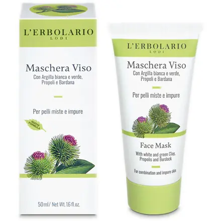 DESCRIZIONELa Maschera Viso con Argilla Bianca e Verde, Propoli e Bardana per pelli miste e impure associa le proprietà purificanti della Propoli alla decisa azione astringente e seboequilibran- te di Argilla e Bardana. Applicata con regolarità, dona alla pelle del viso freschezza e luminosità, rimuovendo le impurità e riducendo gli inestetismi. Contiene argilla verde (illite) e argilla bianca (caolino), dalle proprietà adsorbenti e schiarenti. Il Caolino o argilla bianca è una sostanza minerale naturale costituita prevalentemente da caolinite, tipico minerale silicatico delle argille, mentre l'argilla verde è costituita prevalentemente dall'Illite, anch'essa minerale argilloso. Entrambe le argille hanno una buona azione adsorbente e schiarente e, all'interno di questa Maschera, lavorano a favore di pelli miste e grasse, svolgendo una costante azione normalizzante e purificante, per una pelle morbida e levigata. Contiene estratto glicerico di radice di Bardana, astringente e dermopurificante, ricco in mucillagini, zuccheri e tannini. La sua presenza nella maschera risulta ideale per il trattamento delle pelli con pori dilatati e con problematiche di antiestetiche untuosità della zona T. Contiene ancora estratto di Propoli, dermopurificante e astringente. La Propoli è una sostanza di colore bruno scuro e dal forte odore aromatico, che all'analisi cromatografica (HPLC) ha rilevato un'abbondante presenza di flavonoidi (fra cui tipica è la galangina). I flavonoidi possiedono una conclamata attività antimicrobica, proprietà sfruttata dalle api per l'igiene dell'alveare. L'estratto di Propoli utilizzato per caratterizzare questa Maschera per il viso svolge un'ottima azione dermopurificante e astringente, per il trattamento delle pelli impure, grasse, con presenza di comedoni e pori dilatati. L'estratto glicerico di foglie Ribes e Lampone, sebo-equilibrante, naturalmente ricco in polifenoli e tannini, svolge sulla pelle del viso mista e grassa un'azione sebo-normalizzante e astringente, nonché antiossidante, e aiuterà la pelle impura a ritrovare un nuovo equilibrio. La pelle grassa presenta una secrezione sebacea superiore alla norma. Ne derivano un'eccessiva untuosità cutanea e la dilatazione degli osti follicolari, con conseguente ristagno del sebo e formazioni di comedoni e punti neri. Gli aminoacidi solforati presenti in questa Maschera per il viso agiscono da sebo-normalizzanti: aiutano a rendere fluido il sebo distendendolo in un film molto sottile. Questa loro prerogativa rende più efficace l'azione adsorbente delle Argille e quella dermopurificante di Propoli e Bardana a favore di una pelle più fresca dal ritrovato equilibrio. Formulata con il 99% ingredienti di origine naturale. La restante percentuale di ingredienti garantisce stabilità e gradevolezza del prodotto. Senza parabeni, siliconi, petrolati, tensioattivi solfati. Prodotto cosmetico testato su 8 metalli (nichel, piombo, arsenico, cadmio, mercurio, antimonio, cromo, cobalto) per minimizzare i rischi di allergia e salvaguardare anche le pelli più sensibili. Nickel tested, senza OGM, dermatologicamente testato. Senza ingredienti di derivazione animale. Non testato sugli animali. Con confezione ecosostenibile, nel pieno rispetto anche dell'ambiente. Con tubo in PE di origine vegetale (da Canna da Zucchero) e riciclabile al 100%. Il packaging esterno è in carta FSC, biodegradabile, compostabile e riciclabile, ottenuta secondo i rigorosi standard ambientali e sociali del Forest Stewardship Council (FSC) a supporto di una corretta e responsabile gestione delle risorse forestali. Per un corretto smaltimento dei componenti di imballo, tutte le informazioni necessarie sono riportate nella tabella relativa alla raccolta differenziata, presente sull'astuccio o sulla confezione primaria. 100% Made in Italy. MODALITÀ D'USOApplicare regolarmente 1 o 2 volte la settimana, massaggiando delicatamente. Dopo 15 minuti risciacquare abbondantemente. Evitare diapplicare il prodotto sul contorno occhi. SPEDIZIONE La spedizione dei prodotti avviene entro 24 ore dall'ordine (sabato e festivi esclusi), tramite corriere SDA. Quando l'ordine sarà spedito, riceverai una e-mail di conferma, contenente un link alla tracciatura online dell'invio, che ti permetterà di verificare in tempo reale lo stato della spedizione. La consegna avviene normalmente in 2-3 giorni lavorativi. Per gli ordini di importo pari o superiore a 49 € la spedizione in Italia è GRATUITA (escluso eventuale contrassegno), altrimenti ha un costo di 3.95 €. Se sceglierai il pagamento in contrassegno, vi sarà un costo aggiuntivo di 3 €. È possibile richiedere la consegna in fermo deposito presso una filiale SDA o un punto di ritiro Kipoint, indicando nell'indirizzo di consegna "Fermo Deposito SDA", o "Fermo Deposito Kipoint" e l'indirizzo della filiale o del Kipoint scelto. Effettuiamo spedizioni in tutto il mondo: le spese di spedizione per l'estero sono calcolate in base al peso dei prodotti ordinati e mostrate prima dell'invio dell'ordine. In caso di assenza, o di indirizzo incompleto o errato, l'ordine andrà in giacenza presso la sede del corriere, e sarà possibile richiedere un secondo tentativo di consegna o ritirarla di persona entro 7 giorni. È possibile effettuare un ordine sul sito e recarsi a ritirarlo direttamente nel punto vendita di Via Iglesias 5/B a Cagliari. Per scegliere questa possibilità, seleziona l'opzione "Ritiro in negozio" al momento della scelta della modalità di spedizione, in questo modo non ti verranno addebitate le spese di spedizione e sarai avvisato con una e-mail quando l'ordine sarà pronto per il ritiro. La spedizione è accompagnata da un riepilogo d'ordine, oppure dalla fattura se richiesta al momento dell'ordine (selezionando l'apposita casella del modulo d'ordine e specificando l'indirizzo di fatturazione). Dalla tua Area Cliente potrai verificare lo stato di lavorazione dell'ordine e lo stato della spedizione. Per 