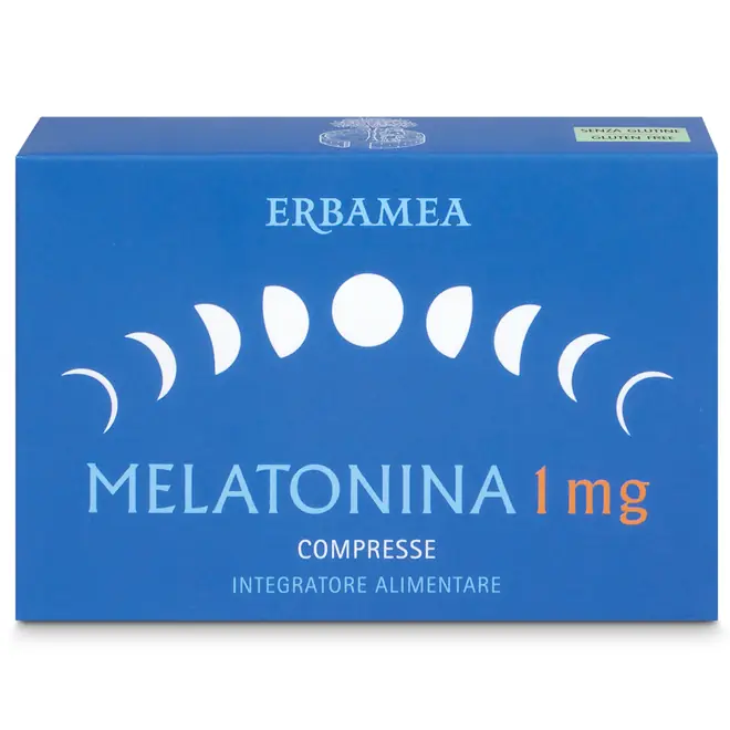 DESCRIZIONEMelatonina 1 mg Erbamea è un integratore di Melatonina, una sostanza prodotta naturalmente dall'organismo per regolare il ritmo sonno-veglia. La Melatonina contribuisce alla riduzione del tempo richiesto per prendere sonno, aiutando ad addormentarsi in modo naturale e permettendo di godere di un sonno di qualità. Proprietà e IndicazioniPuò essere utilizzata in presenza di disturbi del sonno e insonnia, associata eventualmente a erbe officinali rilassanti, per contrastare la difficoltà a prendere sonno; indicata in soggetti anziani e in menopausa, o per chi è soggetto a turni di lavoro che costringono a dormire in orari diversi ogni giorno, in cui questo problema è spesso sentito. Può essere utile per favorire l'adattamento dell'organismo alle variazioni di fuso orario (jet lag). La Melatonina agisce dolcemente, provocando un sonno naturale, e non lascia nessuno stato di sonnolenza il mattino dopo, perché viene metabolizzata in poche ore. Principi attiviUna compressa apporta 1 mg di melatonina, quantitativo che permette di ottenere l'effetto benefico di ridurre il tempo richiesto per prendere sonno. Caratteristiche distintiveSenza glutine. Senza lattosio. Senza ingredienti di derivazione animale. Prodotto 100% made in Italy. MODALITÀ D'USOSi consiglia l’assunzione di 1 compressa al giorno con un bicchiere d’acqua, poco prima di coricarsi.L'effetto benefico per ridurre il tempo richiesto per prendere sonno si ottiene con l'assunzione, poco prima di coricarsi, di 1 mg di Melatonina. L'effetto benefico per alleviare gli effetti del jet lag si ottiene con l'assunzione, poco prima di coricarsi, di un minimo di 0,5 mg di Melatonina il primo giorno di viaggio e per alcuni giorni dopo l'arrivo a destinazione. AVVERTENZEPer mancanza di studi specifici, si consiglia di non assumere in gravidanza e allattamento.RECENSIONI